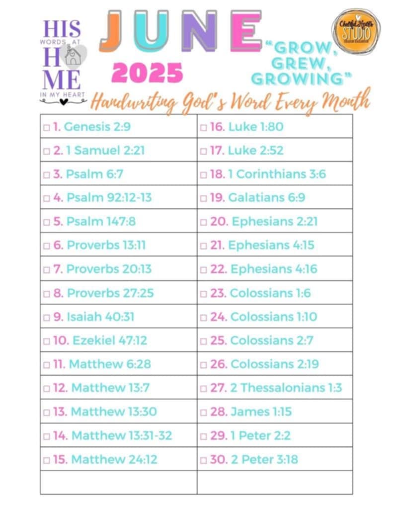 • I select a “focus or word” for each month, and for June our focus will be, “Grow, Grew, Growing”